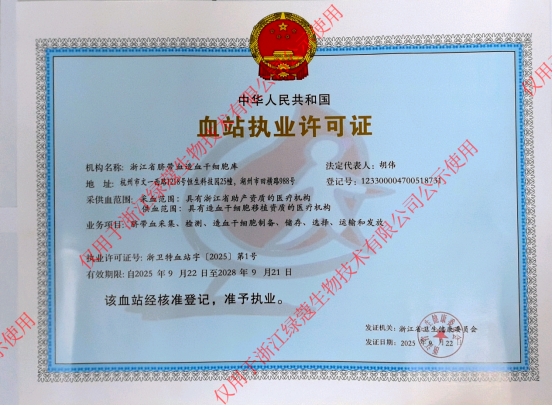 浙江省脐血库是国家统一规划、国家卫健委批准设置、省卫健委监督管理、与浙江省血液中心联合设置,是浙江省内唯一合法运营的脐带血造血干细胞库。浙江省脐血库拥有特殊血站执业许可证,并连续多次通过再执业验收,通过美国血液与生物治疗促进协会的AABB资质认证,脐带血造血干细胞的采集、制备、储存符合国内和国际的相关规定及技术规范,血库库容量可达50万份。